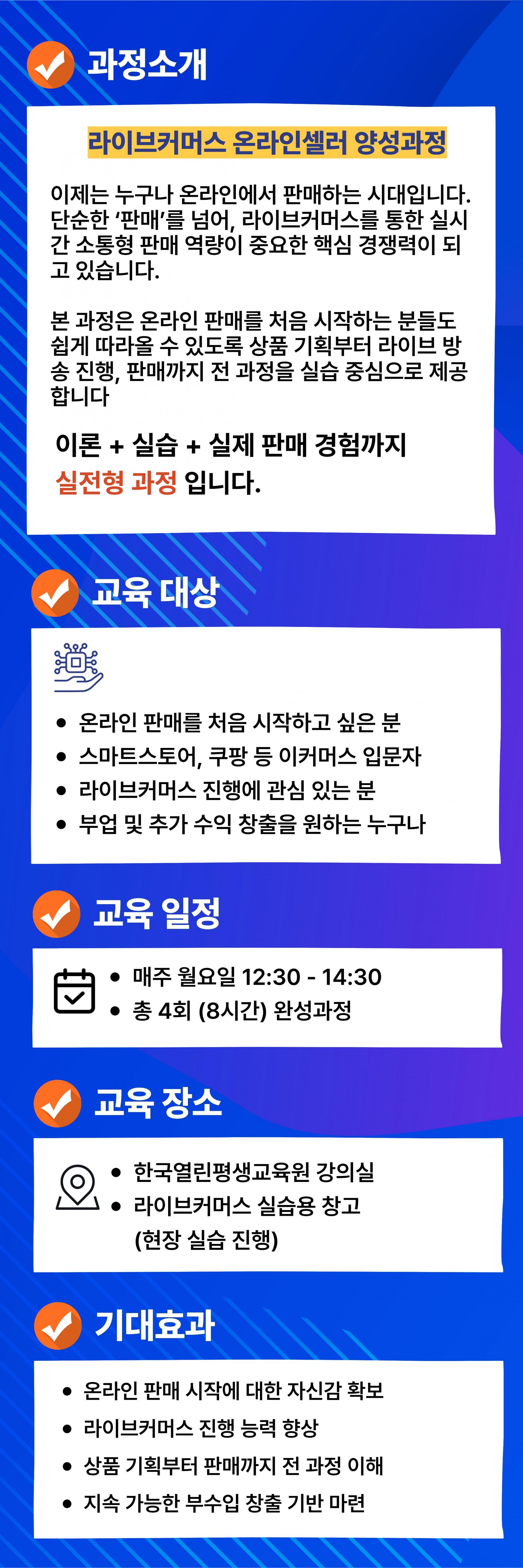 내용 : 온라인 이커머스 주체 발굴 및 실습 교육을 통한 라이브커머스 역량 강화